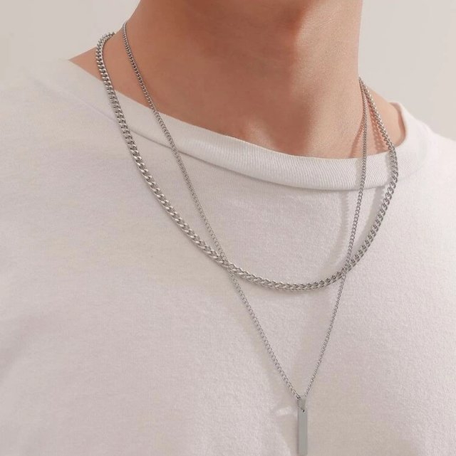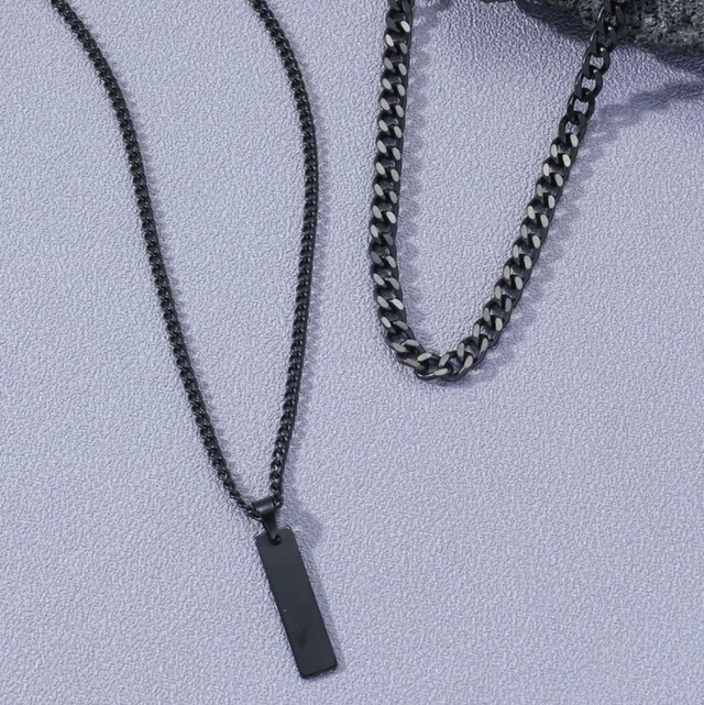 2 pièces/set À La Mode En Acier Inoxydable rectangle Décor Collier À Chaîne Pour Homme Pour Décoration Quotidienne Pour Bijou Cadeau
