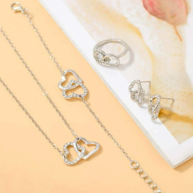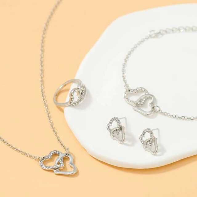 5 pièces Set de bijoux à strass à détail cœur